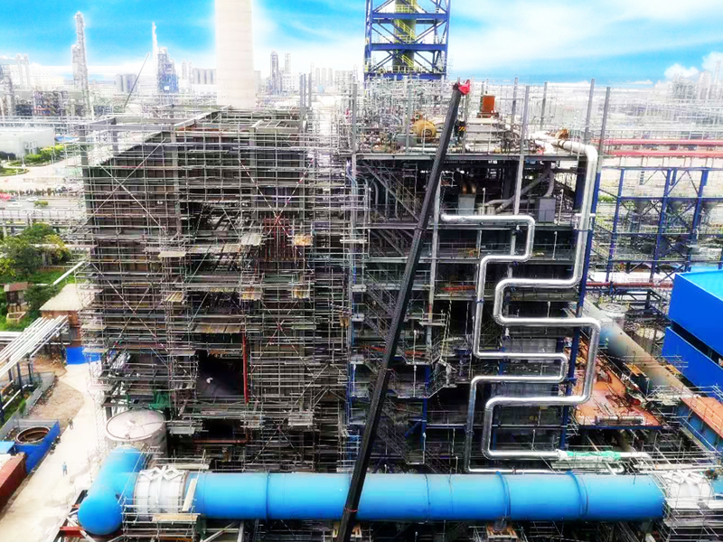 我公司海陸重工【股票代碼002255】作為國內(nèi)余熱鍋爐行業(yè)的知名企業(yè),為該項目配套了自主專利技術(shù)的催化裂化裝置的大型焚燒式CO余熱鍋爐。該設(shè)備的工作原理是用催化裝置的高溫?zé)煔饽芰慨a(chǎn)生蒸汽,利用過熱裝置內(nèi)油漿蒸汽發(fā)生器、外取熱器產(chǎn)生飽和蒸汽。用戶再對飽和蒸汽進行二次利用,可最大程度的實現(xiàn)降低能耗,節(jié)能環(huán)保,降本節(jié)支的總體目標。同時該設(shè)備具有爐膛絕熱、自然循環(huán)、內(nèi)部微正壓,全焊透、模塊化,室外布置維修便利與脫硝溫度可調(diào)等特點。